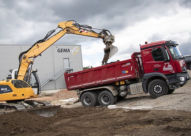 Bei GEMAtech tut sich was: Direkt an unserer bestehenden Lager- und Fertigungshalle entsteht aktuell ein großzügiger Anbau mit noch mehr Lagerfläche.